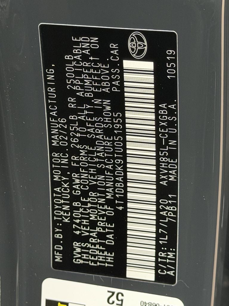 VIN: 4T1DBADK9TU051955
