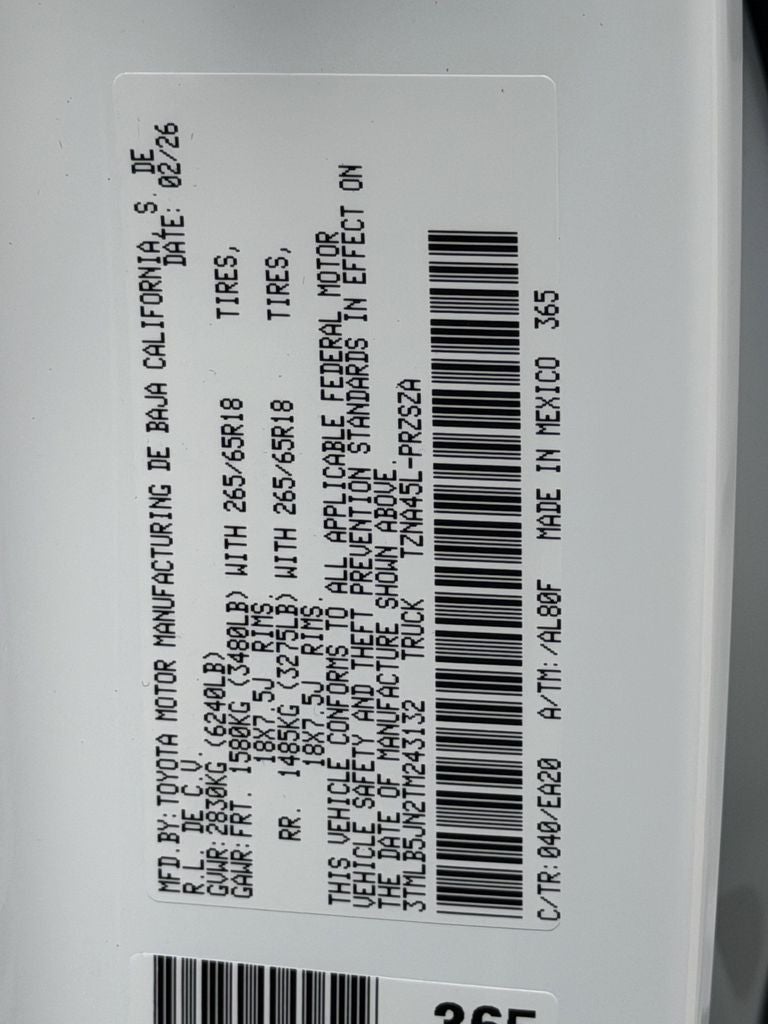• Vehicle Name: Toyota Tacoma 4WD