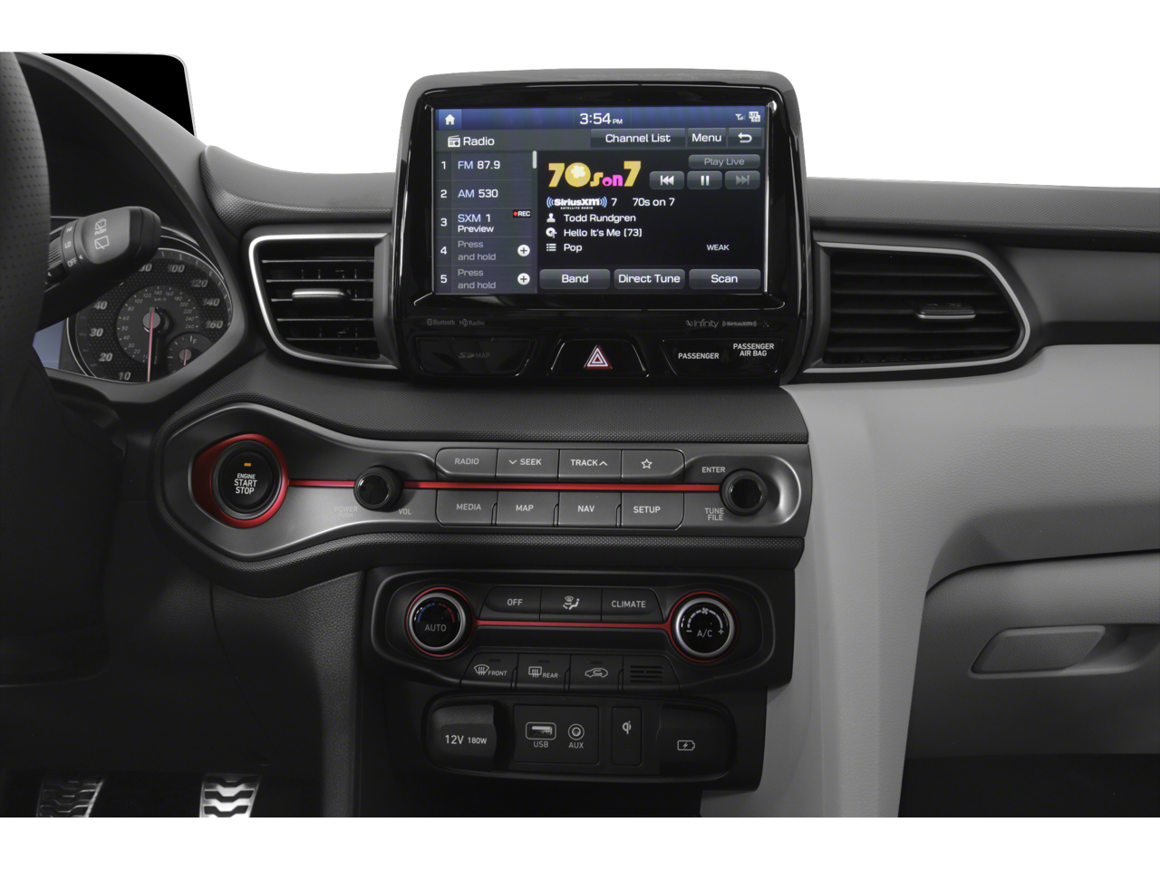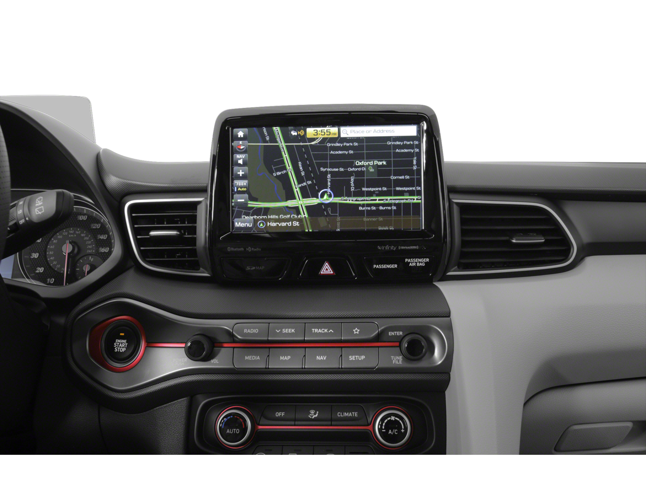 - Radio: AM/FM/SiriusXM 8" Navigation Display Audio -inc: Apple CarPlay, Android Auto, Infinity premium audio w/8 speakers including subwoofer and external amp, HD Radio, Blue Link (Gen 2) connected car system, active sound design, wireless charging pad (Qi), dual charging USB ports, Smartphone/MP3 auxiliary input jacks, Bluetooth® hands-free phone system w/voice recognition and speed-sensitive automatic volume control