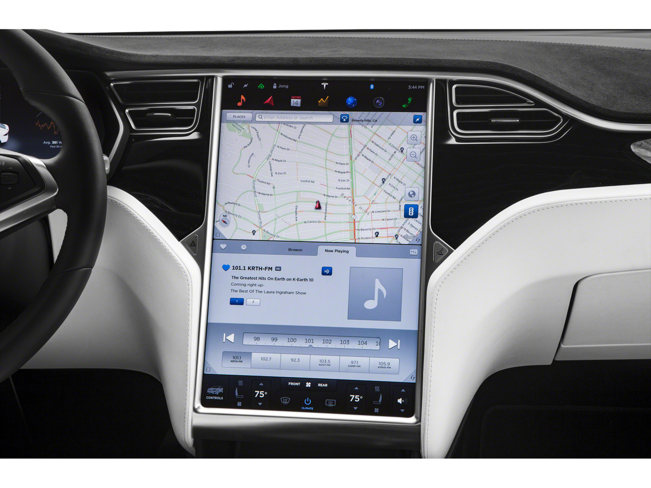 - Radio: Premium Audio System -inc: Specifically tuned for Tesla's ultra-quiet cabin, 1-year premium connectivity (satellite maps w/live traffic visualization, in-car internet streaming music and media, video streaming, caraoke and internet browser) and music and media over Bluetooth®