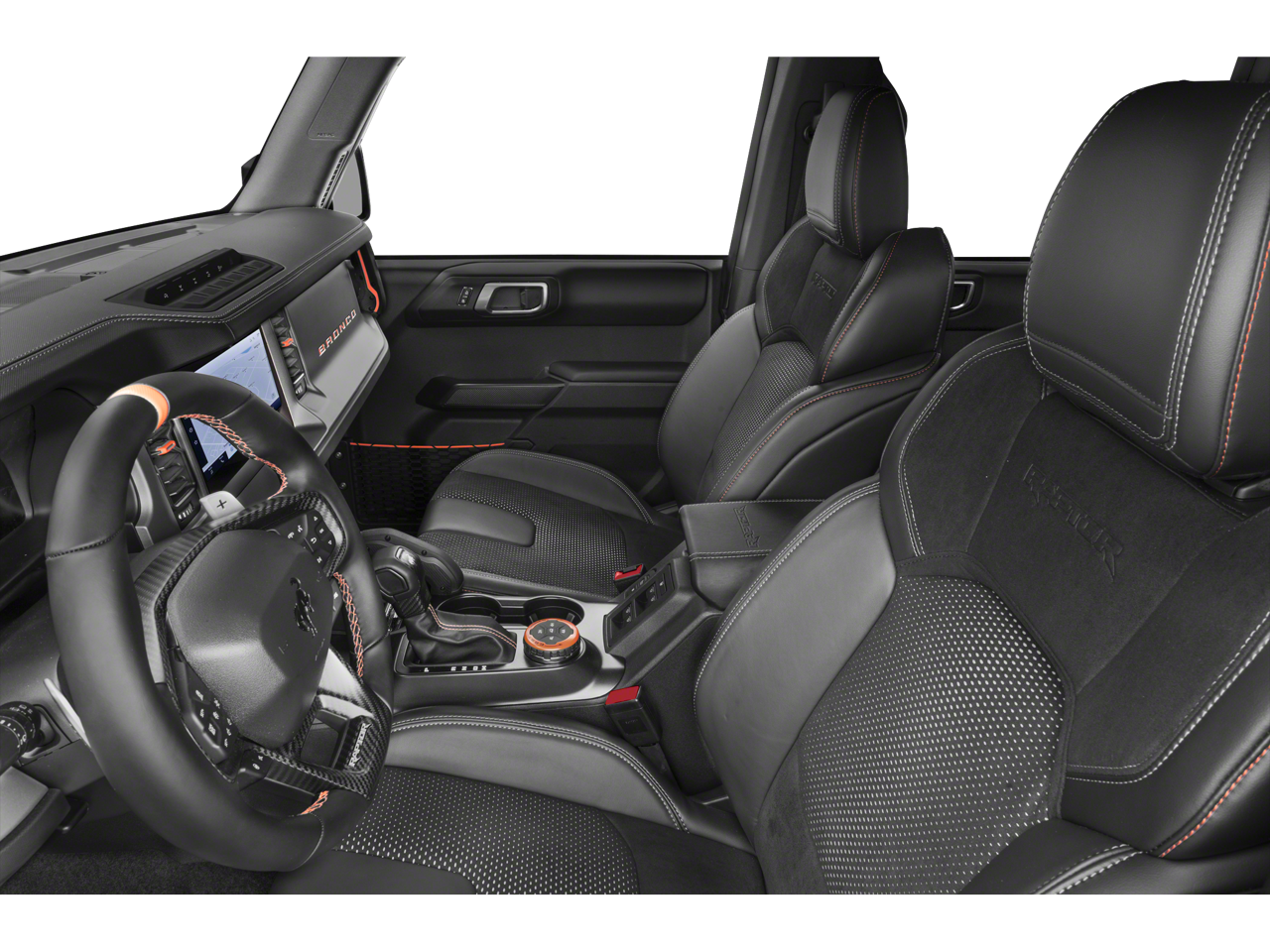 Elevate your driving experience with the Bronco Raptor's exceptional performance and premium amenities. The powerful 3.0L EcoBoost V6 engine, paired with a 10-Speed Automatic transmission and 4WD, delivers thrilling acceleration and uncompromising capability. Enjoy the convenience of Connected Navigation, keeping you on track and connected, while the premium B&O Sound System by Bang & Olufsen provides an immersive audio experience.